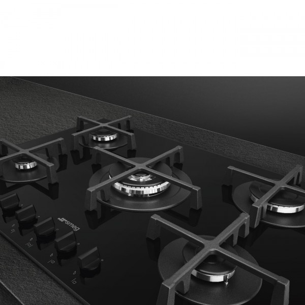 PLAQUE PV275B 5*GAZ 75CM VERRE NOIR SMEG